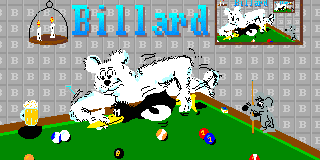 Das ist ein Billardspiel für 1 oder 2 Spieler. Es gibt ca. 4 verschiedene Spielvarianten. Auch die Animationen der Bälle sind gut. Bei Verwendung spezieller Fenstermodi in WinUAE kann es zu Anzeigeproblemen kommen.